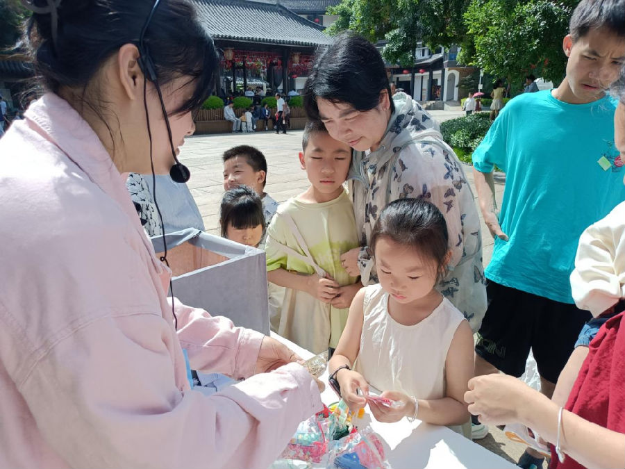 活动伊始,工作人员精心准备了趣味问答环节,参与者有序排队抽取题卡。题目融合端午起源故事、龙舟竞渡、包粽挂艾等传统习俗,更融入会昌县博物馆的特色知识,古今文化碰撞出独特魅力。参与者说出正确答案后,便能获得一份精美的端午香囊DIY材料包,带着这份“通关奖励”,即刻开启端午香囊的创意手作之旅。