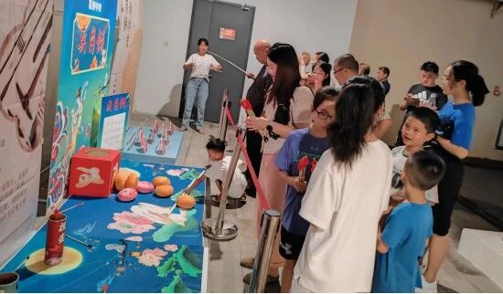 活动期间,博物馆展厅内弥漫着浓郁的节日气息。众多游客进入博物馆,即被文物所吸引,驻足观赏。场馆内设置了多个活动版块,包括了夹月饼、钓冰皮月饼、投壶等传统游戏,这些活动深受广大市民,特别是小朋友们的喜爱。