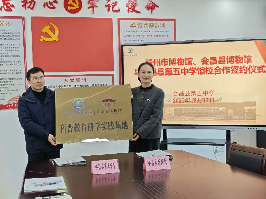 12月17日,会昌县博物馆与会昌县第五中学馆校合作签约仪式顺利举行。双方代表签署合作协议,标志着馆校协同育人工作迈出实质性步伐。