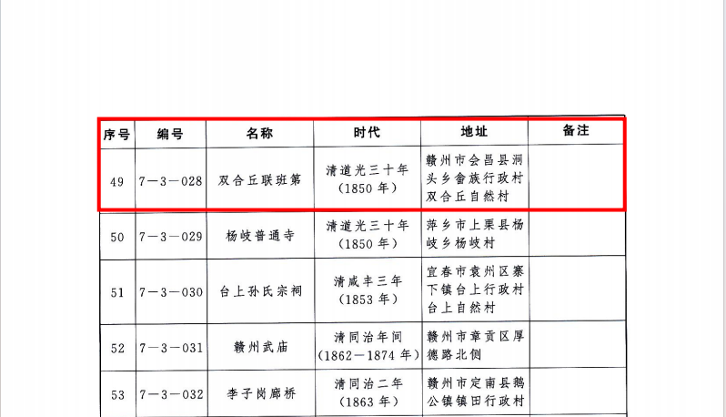 双合丘联班第位于江西省赣州市会昌县洞头乡畲族行政村双合丘组民居群中,于2020年被列为赣州市文物保护单位。联班第由前院、门楼、内院及六扇五间民居组成,全屋共四十五间,占地面积达1438平方米。门楼门额嵌着青石匾,"联班第"三个大字苍劲有力,檐梁斗拱采用青砖叠涩工艺,形制精致小巧,尽显工匠的巧思。而"联班第"的得名,源自一段佳话——屋主的两个儿子蓝云锦、蓝云继接连考取进士,家族荣光由此定格在宅院的名号中。历经百年风雨,这份崇文重教的畲族家风,仍在青砖黛瓦间流转。
