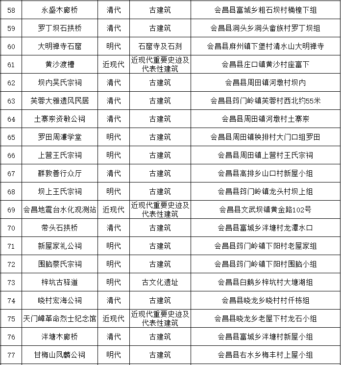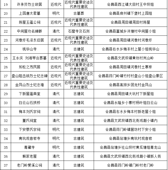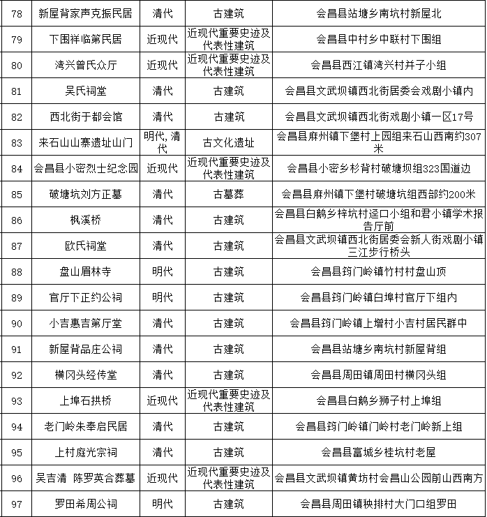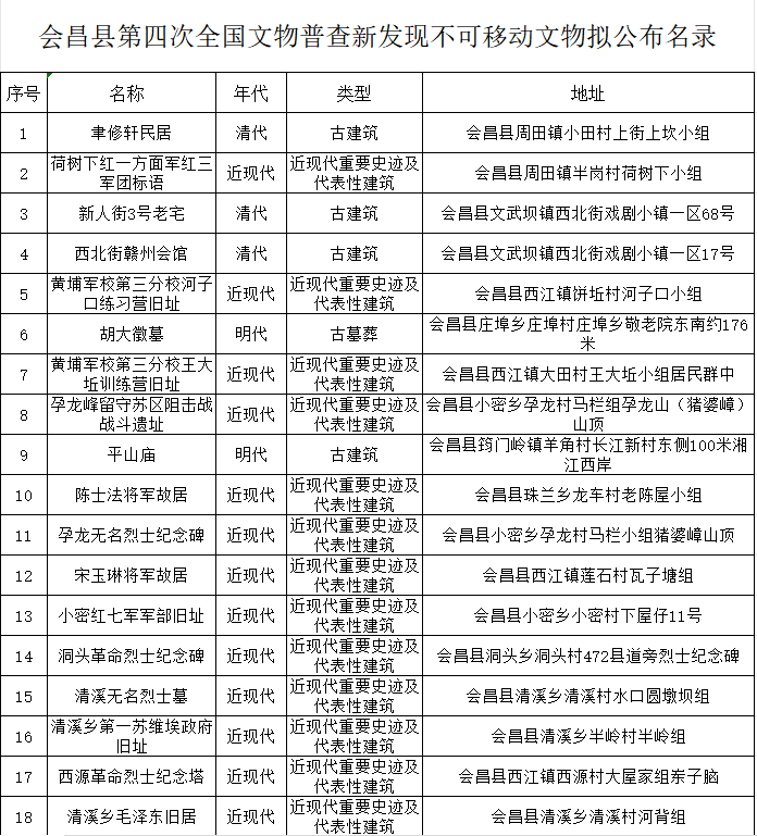 附件:会昌县第四次全国文物普查新发现不可移动文物拟公布名录