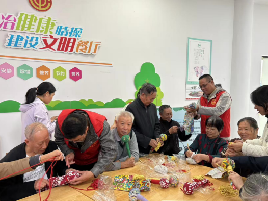 在贡江社区的活动现场,邻里街坊们围坐一堂,气氛热闹而温馨。大家开心地制作着艾草锤,让温情与安康在指尖流转。制作完成后,特色美食更添了几分烟火气息,居民们品尝着美食,喝着清甜的菊花茶,咸香与甘醇在口中交织,暖意从舌尖蔓延至心头。大家互相分享着生活中的趣事,邻里情谊变得更加深厚。